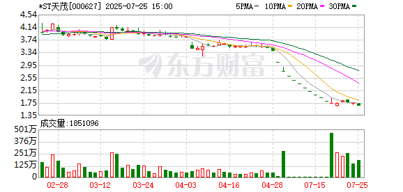 *ST天茂7月25日巨额走动平台出现一笔成交,成交量50.00万股,成交金额92.00万元,巨额走动成交价为1.84元,相对本日收盘价溢价10.84%。该笔走动的买方贸易部为联储证券股份有限公司浙江分公司,卖方贸易部为华源证券股份有限公司广东分公司。
