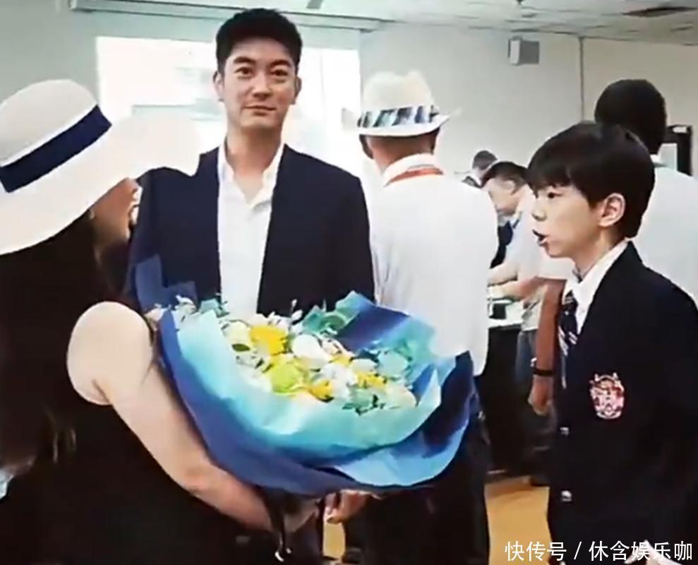 霍想燕捧开花束靠在丈夫肩头,十二岁的女儿站在前边。
